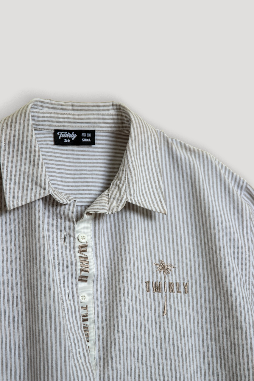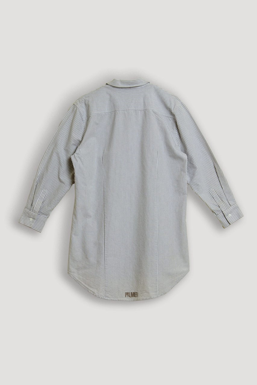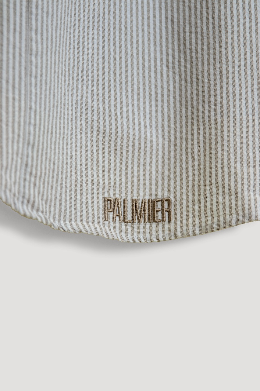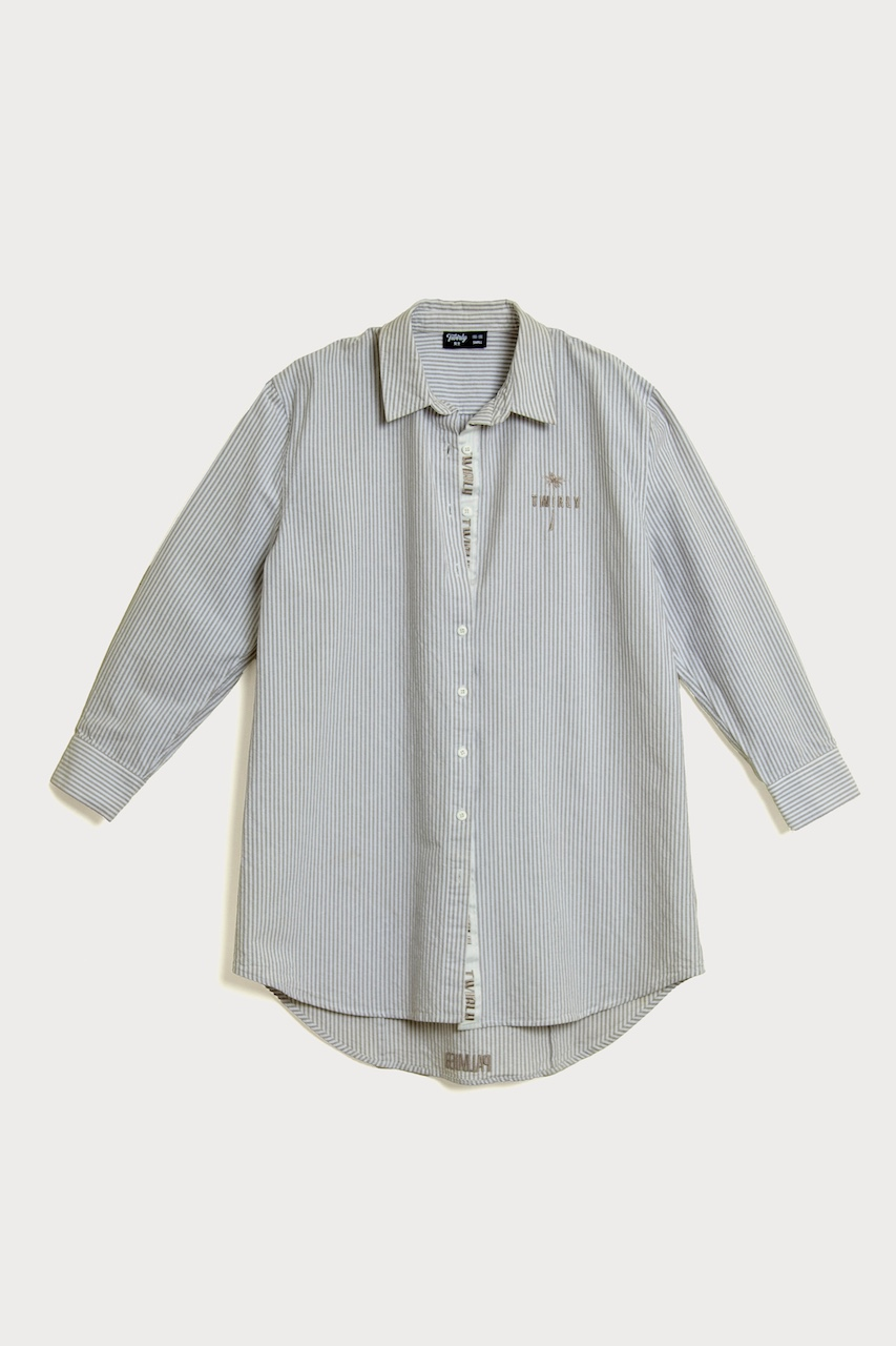 شيرت مخطط مصنوع ليكون أوڤرسايز. شعار Twirly مطرز على اليسار الأمامي ومطرز PALMIER على الحافة السفلية الوسطى للشيرت